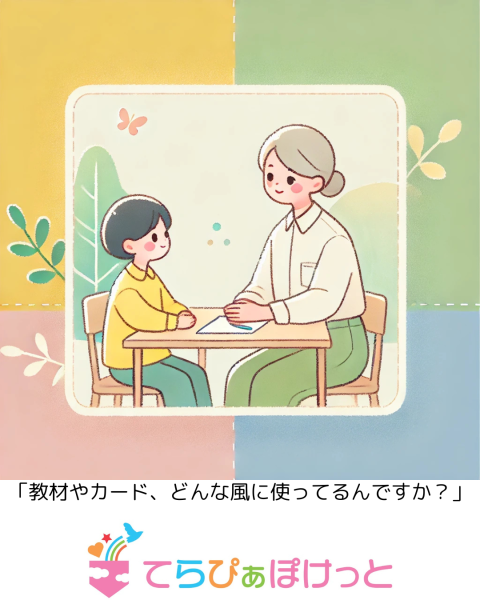 てらぴぁぽけっとでは、カードや絵本といった教材も、子どもたち一人ひとりのプログラムに合わせて活用しています。